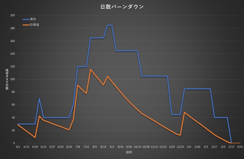 さらに日数ベースでの積み上がりの状況が可視化できます。